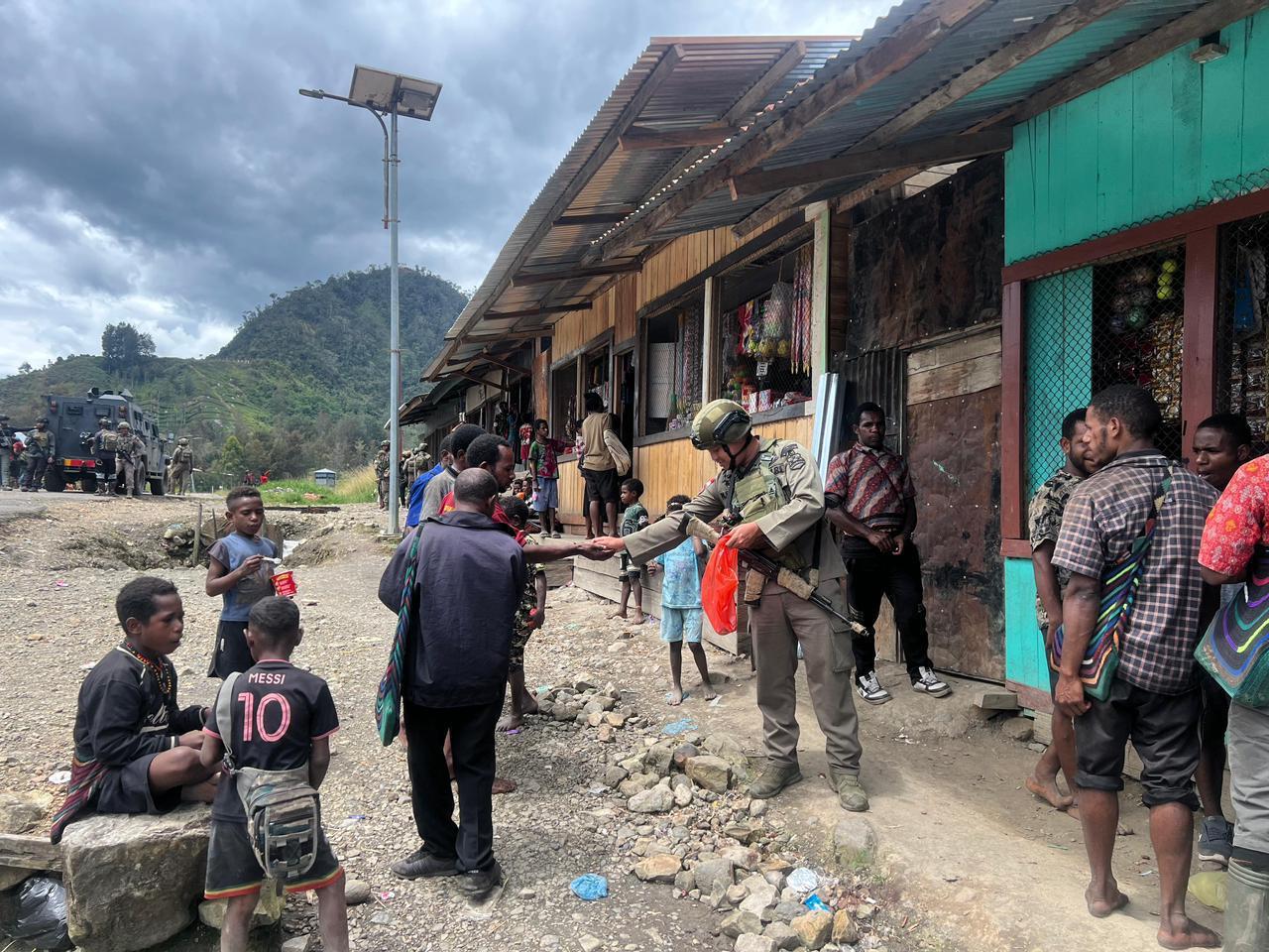 *Hadirkan Pendekatan Diri dengan Masyarakat, Personel Ops Damai Cartenz Belanja dan Berbagi di Sinak