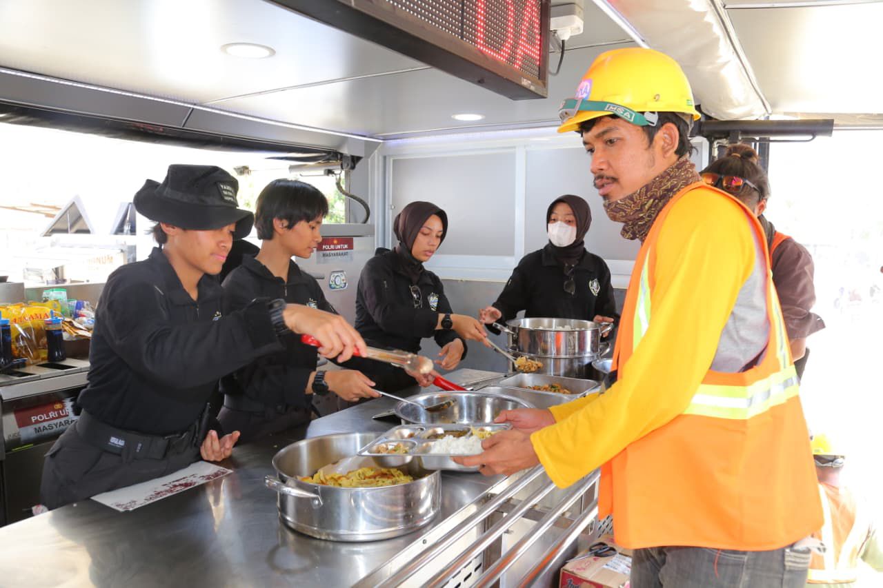 Taruna Tingkat III Akademi Kepolisian, Intan Gustava Rongrean, menyampaikan bahwa dapur lapangan tersebut menyiapkan berbagai menu makanan bergizi untuk masyarakat.