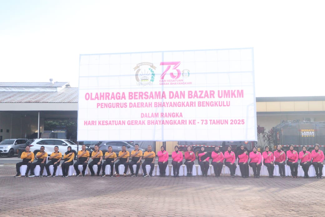 TBnews, BENGKULU – Dalam rangka memperingati Hari Kesatuan Gerak Bhayangkari (HKGB) ke-73 Tahun 2025, Polda Bengkulu bersama Bhayangkari Daerah Bengkulu menggelar kegiatan olahraga bersama dan bazar UMKM Bhayangkari di Lapangan Anton Soedjarwo, Selasa (14/10/2025).