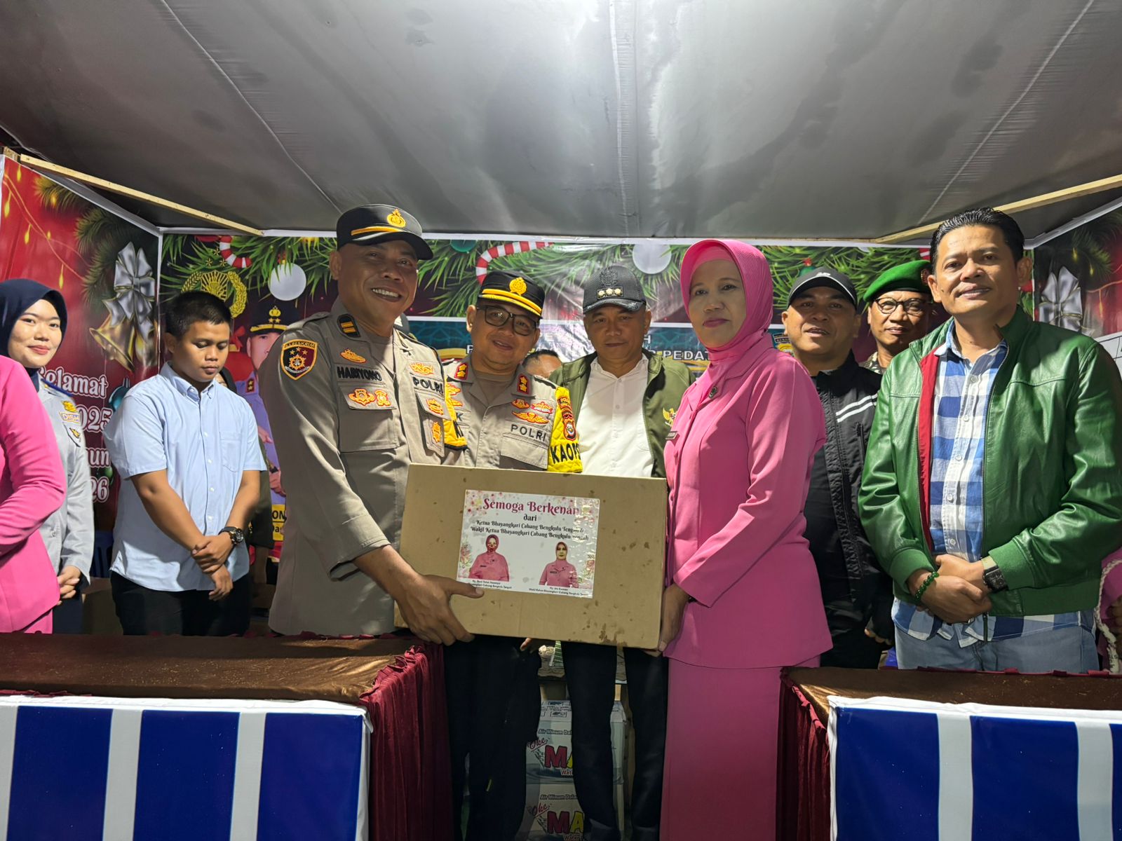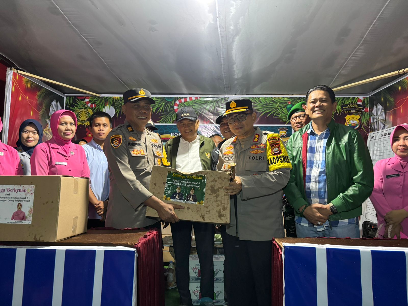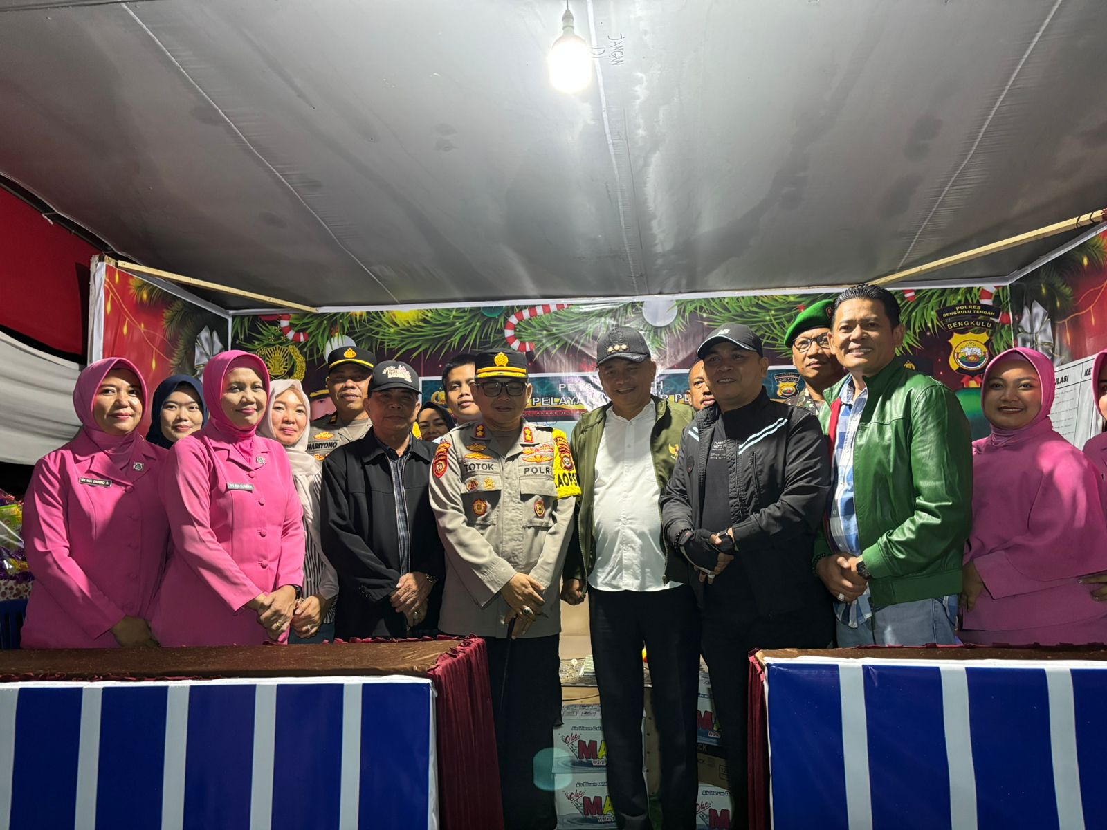 Bengkulu Tengah – Kapolres Bengkulu Tengah AKBP Totok Handoyo, S.I.K., bersama Bupati Bengkulu Tengah Rachmat Riyanto, S.T., M.AP., Wakil Bupati Tarmizi, S.Sos., Ketua DPRD Fepi Suheri, M.AP., Pj. Sekda, Asisten I Setda, Pejabat Utama Polres, Kepala OPD, Danramil, Camat, serta Bhayangkari Cabang Bengkulu Tengah, melakukan pengecekan langsung ke sejumlah Pos Pelayanan Natal dan Tahun Baru (Nataru), Rabu  malam (31/12/2025).