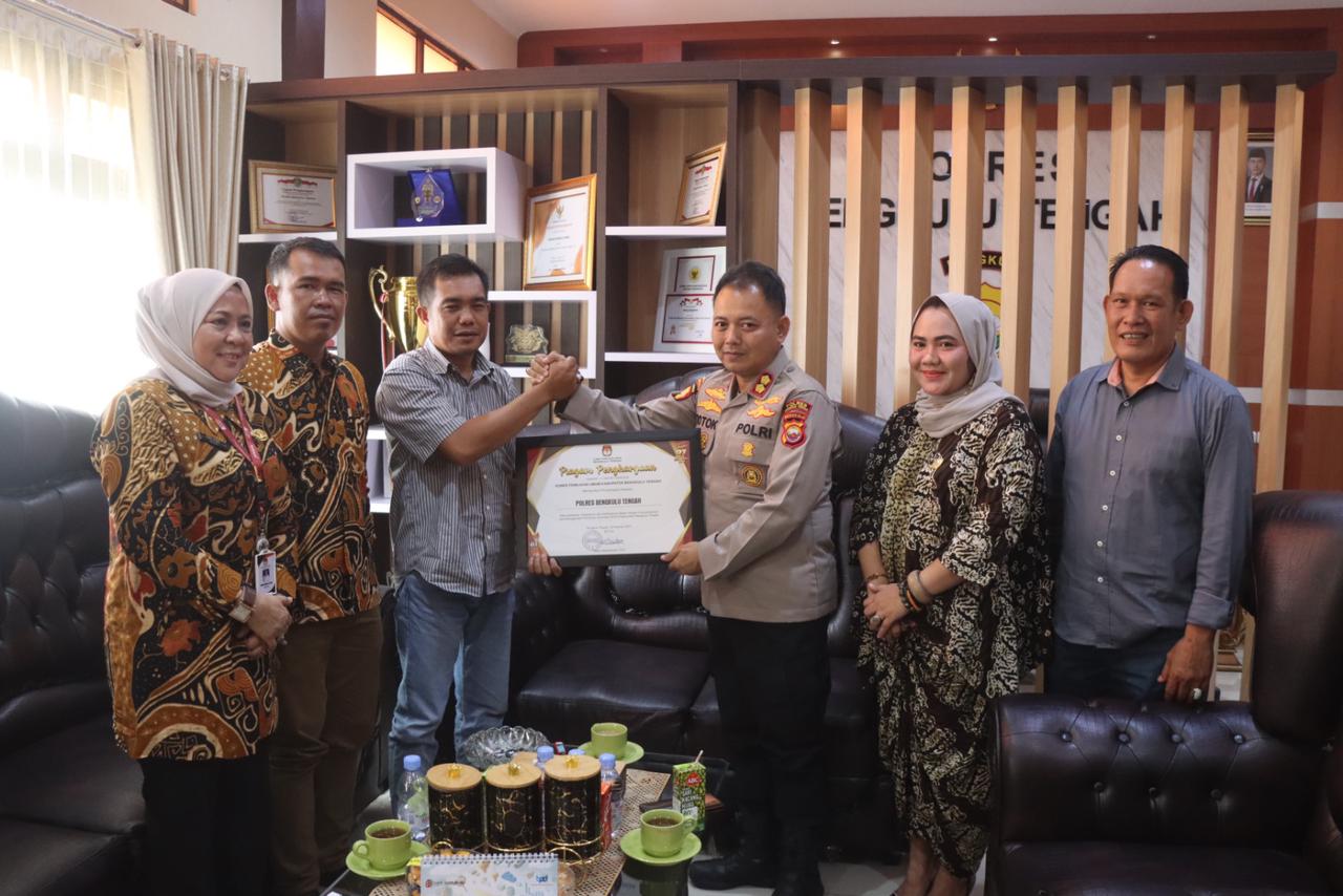 Penghargaan diserahkan langsung oleh Ketua KPU Kabupaten Bengkulu Tengah, Meiky Helmasyah, kepada Kapolres Bengkulu Tengah, AKBP Totok Handoyo, S.IK.