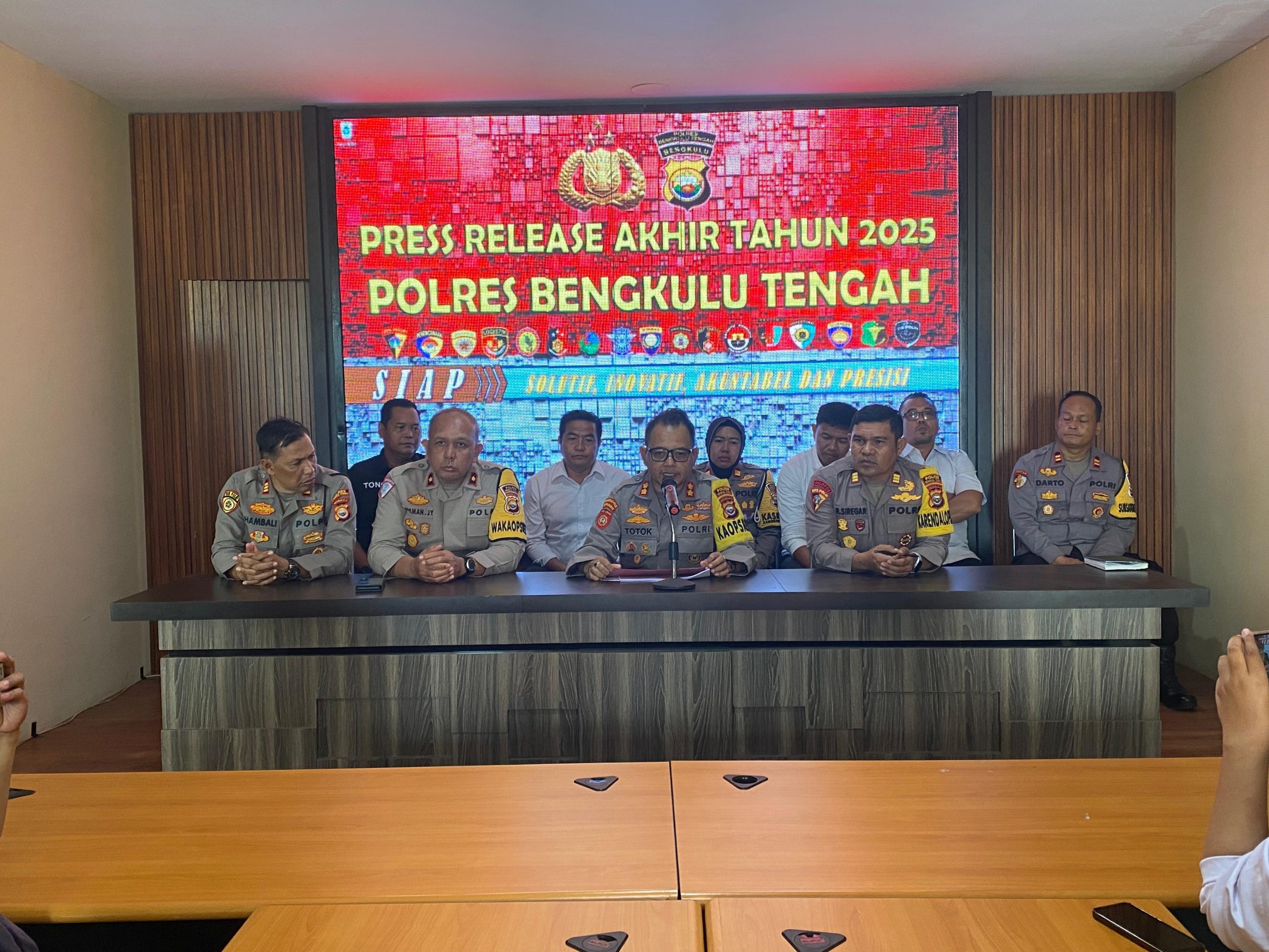 Bengkulu Tengah – Kepolisian Resor Bengkulu Tengah melaksanakan kegiatan Press Rilis Akhir Tahun 2025 yang dipimpin langsung oleh Kapolres Bengkulu Tengah AKBP Totok Handoyo, S.I.K bertempat di Aula Polres Bengkulu Tengah, Rabu (31/12/2025).