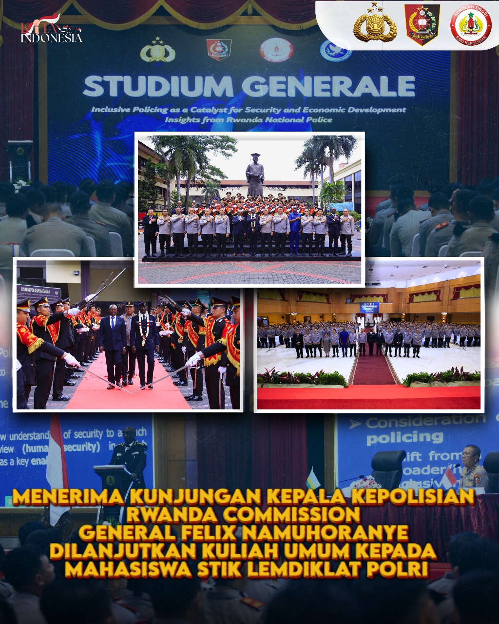 Dalam rangkaian kegiatan tersebut, dilakukan pula kuliah umum yang disampaikan langsung oleh Commission General Felix Namuhoranye kepada mahasiswa STIK Lemdiklat Polri dengan tema “Inclusive Policing as a Catalyst for Security and Economic Development: Insights from Rwanda National Police.”